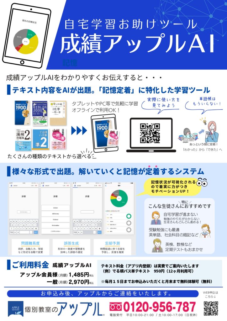 成績アップルAIで、お子さまの学びの記憶を定着させましょう!